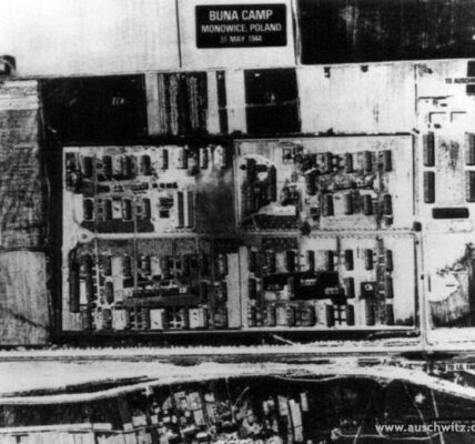 Luftaufklärungsfoto der Alliierten, 31. Mai 1944. Ein Panorama der Buna-Werke, die zur IG Farben gehörten. Aufnahme aus dem Jahr 1945 Das Bild wurde während des Besuchs von Heinrich Himmler im IG-Farben-Werk im Jahr 1942 aufgenommen Das Foto wurde während des…
