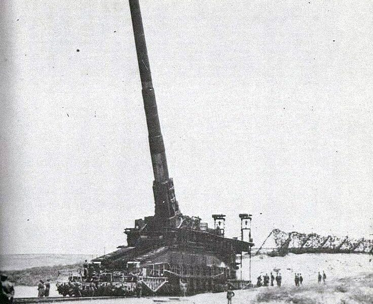Der „Schwere Gustav“ war das schwerste mobile Artilleriegeschütz, das je gebaut wurde, und die größte gezogene Waffe, die jemals im Kampf eingesetzt wurde. Er wog fast 1350 Tonnen und konnte 7-Tonnen-Projektile bis zu einer Entfernung von 47 Kilometern abfeuern.